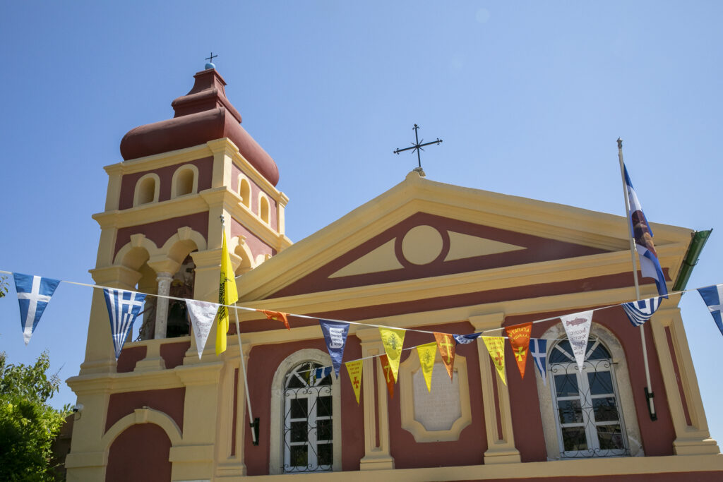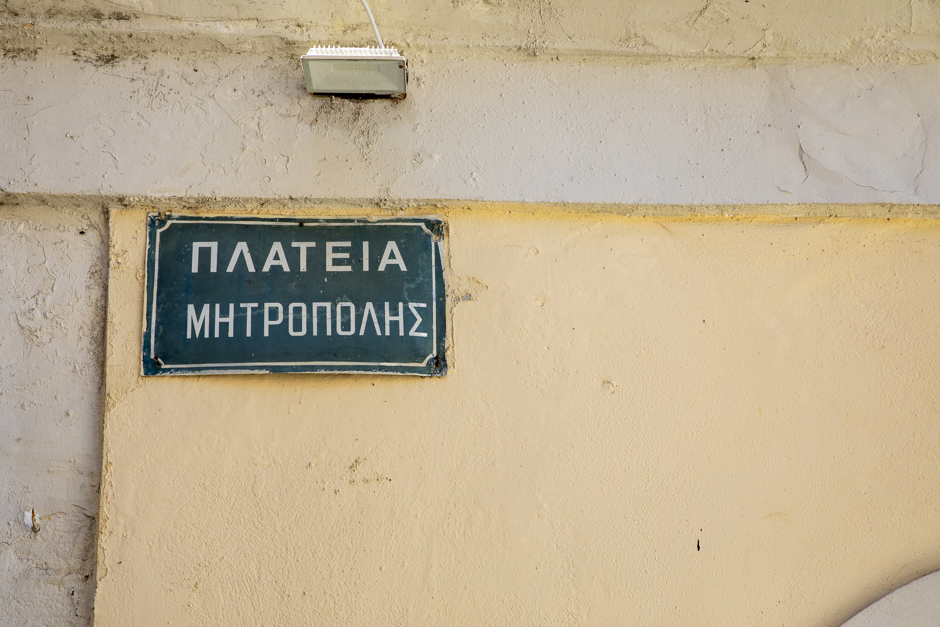 Taking a break in front of the Holy Metropolitan Church of the Virgin Mary Spilaiotissa, Saint Blaise and Saint Theodora Augusta